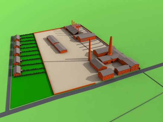 1853Am 25.4.1853 kauft das Unternehmen „Société de la Prusse-Rhènane“ ein Grundstück der heutigen Gemeinde Oberhausen mit direkter Anbindung an die Köln-Mindener Eisenbahn. 1855Anfang des Jahres werden die ersten Anlagen des Walzwerks in Oberhausen fertig gestellt. Das aus den Hütten Borbeck und Mülheim stammende Rohzink wird zu Reinzink eingeschmolzen und zu Zinkblechen ausgewalzt. 1857Die erste Rösthütte - aus 14 Erzröstöfen bestehend – wird in Oberhausen errichtet. Am Rande des Werksgeländes entsteht eine Arbeitersiedlung. |