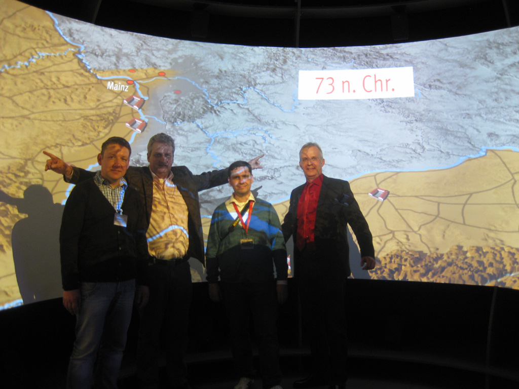 - Die Geschichte Triers von der Gründung 17. v. Chr. bis in die Spätantike. Dazu wurde die Stadt von uns in mehreren Zeitebenen dreidimensional rekonstruiert. Aufwändige Computeranimationen vermitteln dem Besucher einen Eindruck der damaligen Situation und was heute davon noch in der Stadt zu sehen ist, u. a. ein hochaufgelöstes Panoramabild Triers mit den UNESCO Welterbestätten.