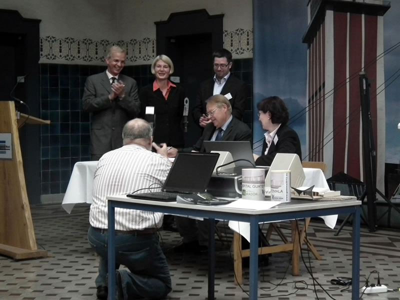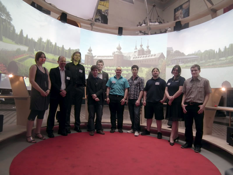 Feierlichkeiten zur Unterzeichnung des Kooperationsvertrages zwischen der Hochschule Rhein-Waal und der Hochschule Anhalt. Das Video zur Rekonstruktion der Klosteranlage Kamp wurde hier erstmals gezeigt - auf einer gekrümmten 240°-Leinwand in der sogenannten Næxus.