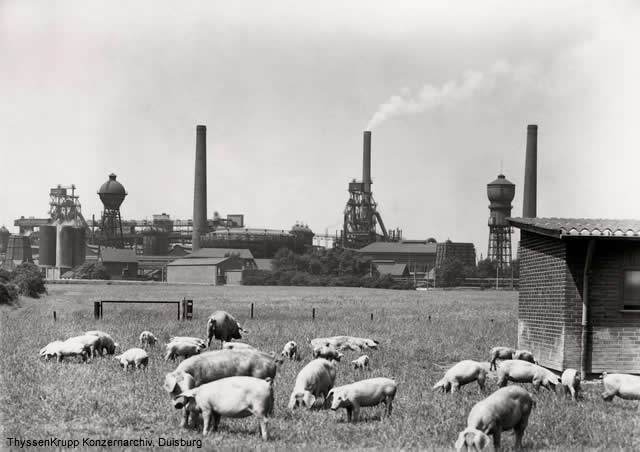 Doch die Idylle trügt. Im Oberhausener/Essener Gebiet gibt es seit dem 18. Jhdt. die ersten Hüttenbetriebe, wie die Antonyhütte, die Gutehoffnungshütte oder die Hütte Neu-Essen.