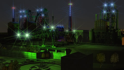 Für den Betrachter derweil ist und bleibt die Lichtinstallation ein faszinierendes Schauspiel, wogegen es selbst die Industriekulisse im Sonnenuntergang schwer hat. So ist nur der Feuerschein über dem ehemaligen Hüttenbetrieb Meiderich erloschen. Der aus ihm hervorgegangene Landschaftspark Duisburg-Nord erstrahlt dafür im neuen farbigen Licht.