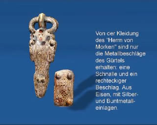 Mitte der 50er Jahre des vergangenen Jahrhunderts wurde bei Ausgrabungen in Morken-Harff, Erftkreis ein kleiner fränkischer Friedhof gefunden. Unter den zahlreichen Bestattungen befand sich auch ein Grab, dass viele, zum Teil außergewöhnlich kostbare Beigaben enthielt. Diese Beigaben können den Tod des Bestatteten, des "Herrn von Morken", in die Zeit um 600 n. Chr. datieren. Die Bedeutung des Grabes für die Archäologie ließ es sinnvoll erscheinen, das Grab mitsamt seinen Beigaben im Museum auszustellen.