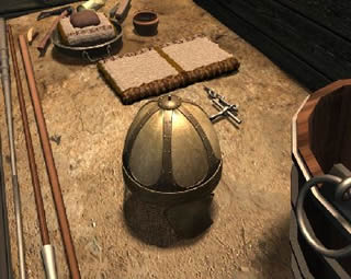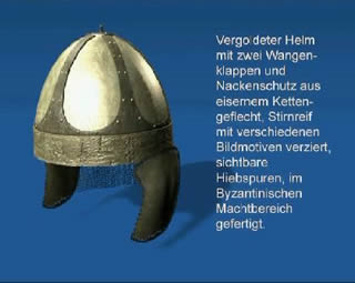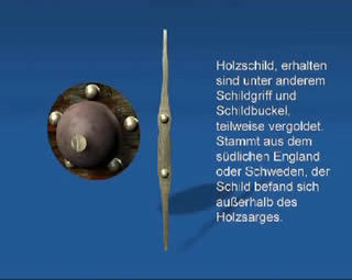 Da das Grab zum Zeitpunkt seines Auffindens präsentiert wird, und man deshalb berücksichtigen muss, dass Holzteile im Laufe der Jahrhunderte vergangen bzw. Eisenteile verrostet sind, wurde überlegt dem Besucher den Zustand kurz nach der Grabschließung zu zeigen. Dabei bediente man sich einer digitalen Rekonstruktion. In ihr sind alle Beigaben noch vollständig in ihrem ursprünglichen Kontext erhalten. Der Besucher betrachtet von außen das Grab wie mit einem Röntgengerät, erkennt den Toten in einem Holzsarg ruhend, seinen Schild an die Seite der Grabkammer lehnend und sieht die unterschiedlichen Beigaben, wie kostbare Gewänder, die Waffen des Toten oder seinen Helm.
