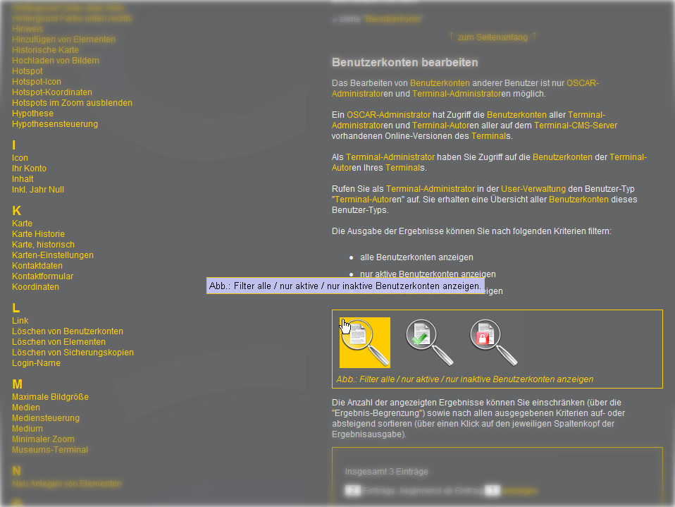 Falls ein Benutzer sich einmal in diesem begrifflichen Netzwerk orientieren muss, schlägt er den gesuchten Begriff einfach in der Hilfe nach.