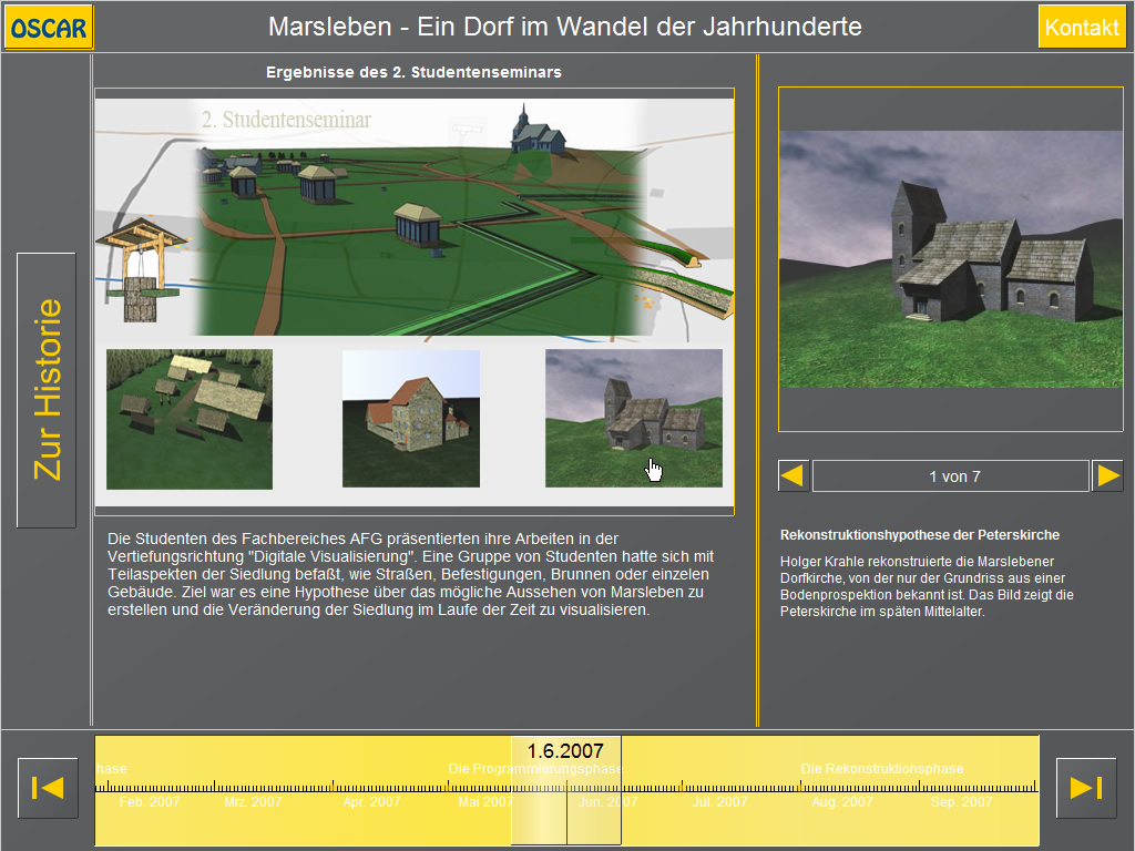 Medien (kl. Bild rechts) und Zeitleiste (gelb, 1.6.2007)