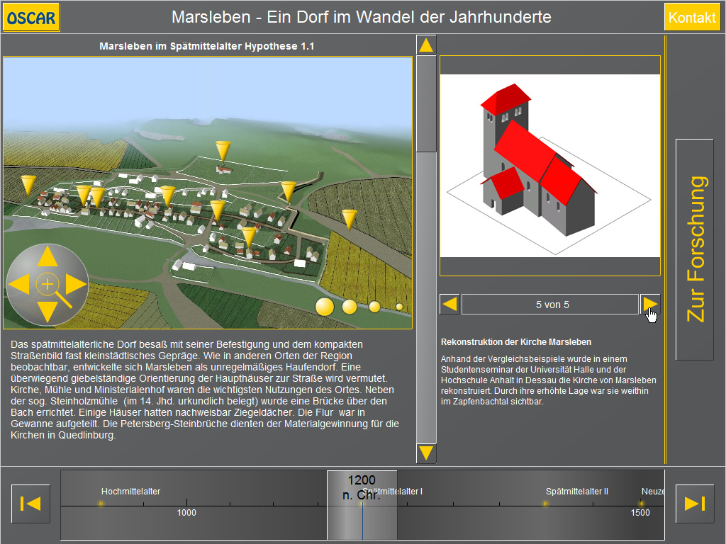 Im zeitlichen Bereich "Forschung" werden Bilder eingeblendet, die durch Anklicken ergänzende Medien aufrufen.