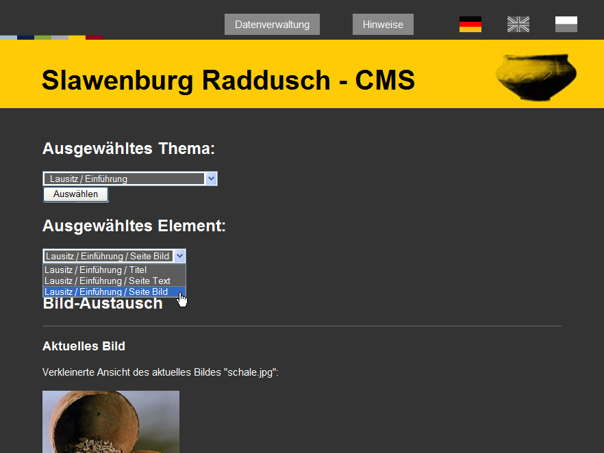 Dieses CMS ist eines unserer Beispiele sehr individuell angepasster Anwendungen für Museen. Auch wenn die technische Seite auftragsgemäß realisiert wurde, freuten wir uns dennoch sehr über den positiven "Aha"-Effekt bei der Übergabe des Systems, die selbstverständlich mit einer praktischen Einführung einherging.