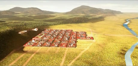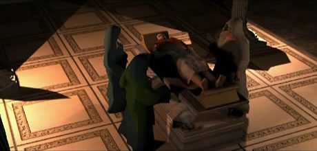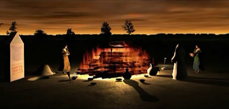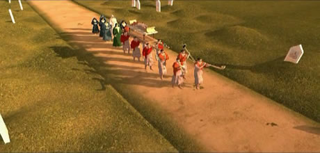 Zu einer römischen Stadt gehörten selbstverständlich auch die Gräberfelder, die sich entlang der Hauptausfallsstrassen befanden. Ziel der virtuellen Rekonstruktion war es eine Gräberfeldszene nicht nur in ihrem städtebaulichen Kontext zu zeigen, sondern auch deren kulturelles Umfeld zu visualisieren. Da eine Kamerafahrt entlang einer Gräberstrasse dem Zuschauer wenig Spektakuläres bietet, wurden die drei Phasen einer Beerdigung, Aufbahrung, Leichenzug sowie Verbrennung in Szene gesetzt und lediglich durch dezente Musik ansprechend untermahlt.