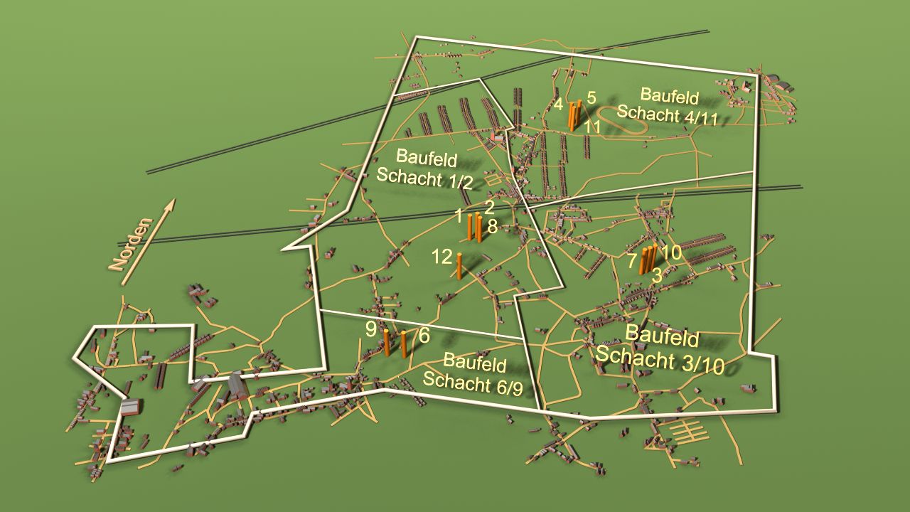 In Folge werden 2 Gruppen erneut Schurfanträge stellen. Zum einen ist es eine Gruppe aus Essen. Zu ihr gehören Hermann Schlieper, der Gutsbesitzer Friedrich Schulz, der Gastwirt Christoph Korn, der Schreinermeister Bernhard Rieck und die Kaufleute Heinrich Hausmann und Robert Nedelmann. Hermann Schliepen erhält am 24.April 1840 den Schurfschein für einen Bezirk nord-östlich vom heutigen Schacht 1/2/8. Die Gruppe beginnt 2 Jahre später, also um 1842, ihre ersten zwei Bohrungen in diesem Bezirk.